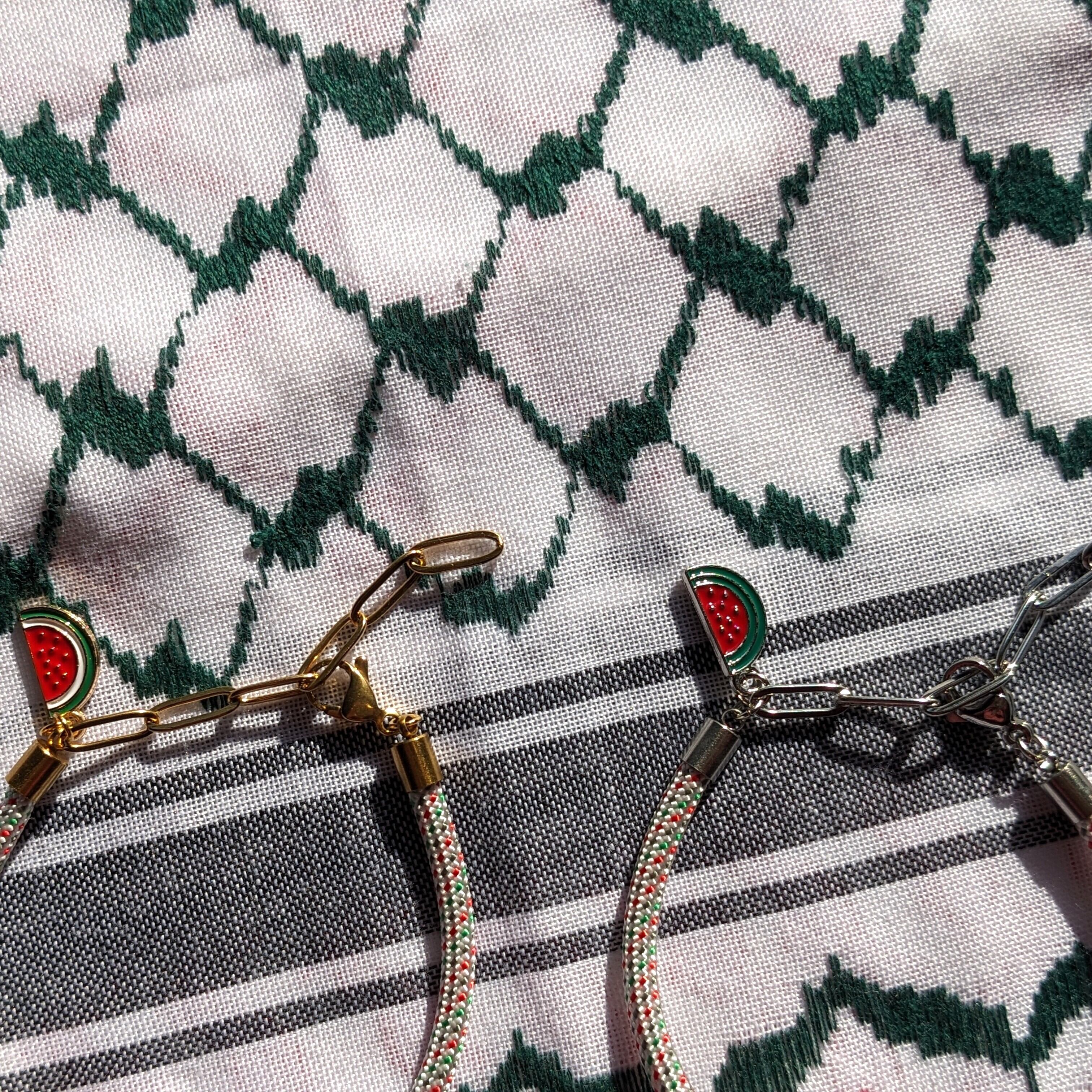 スイカはパレスチナ国旗の配色と似ていることから、占領国家イスラエルによって国旗の使用が禁止された際に、パレスチナの人々はスイカを掲げて抵抗しました。そこからスイカはパレスチナの抵抗の象徴となりました。